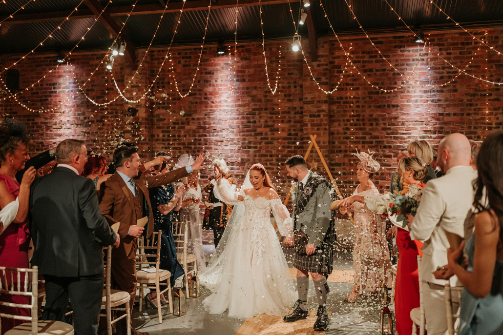 Sounds cheesy but the whole day was just perfect but one of our favourite moments was after we were announced husband and wife – “I’m in love with you” by The 1975 started BLASTING as we walked down the aisle together and everyone was throwing confetti at us and singing/dancing along and they followed us dancing out of the ceremony space. Conor and I shared a kiss (pictured above) and we turned around to see our guests applauding and dancing together.