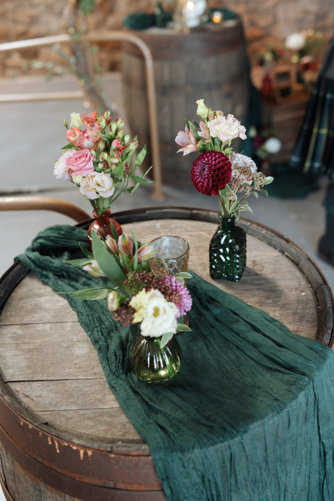 We went for green with pinks and pops of colour for our theme. We were just drawn to these colours, it fits us as people and was very easy to make work.