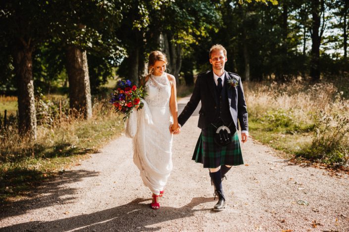 We had the pleasure of having this lovely couples Scottish/New Zealand wedding celebrations back in August. Everything was perfect about this day, the weather, the colourful flower choices and the cosy decor in the byre. The travelling duo really put their own personal touch throughout the byre with photos and mini bottles of buckfast! If you want to find out a bit more about their day, keep reading!
